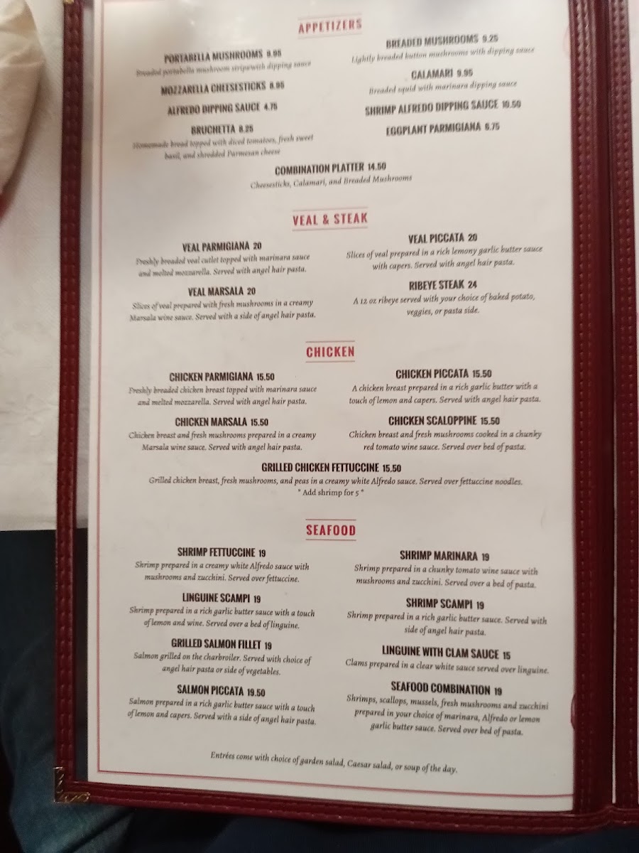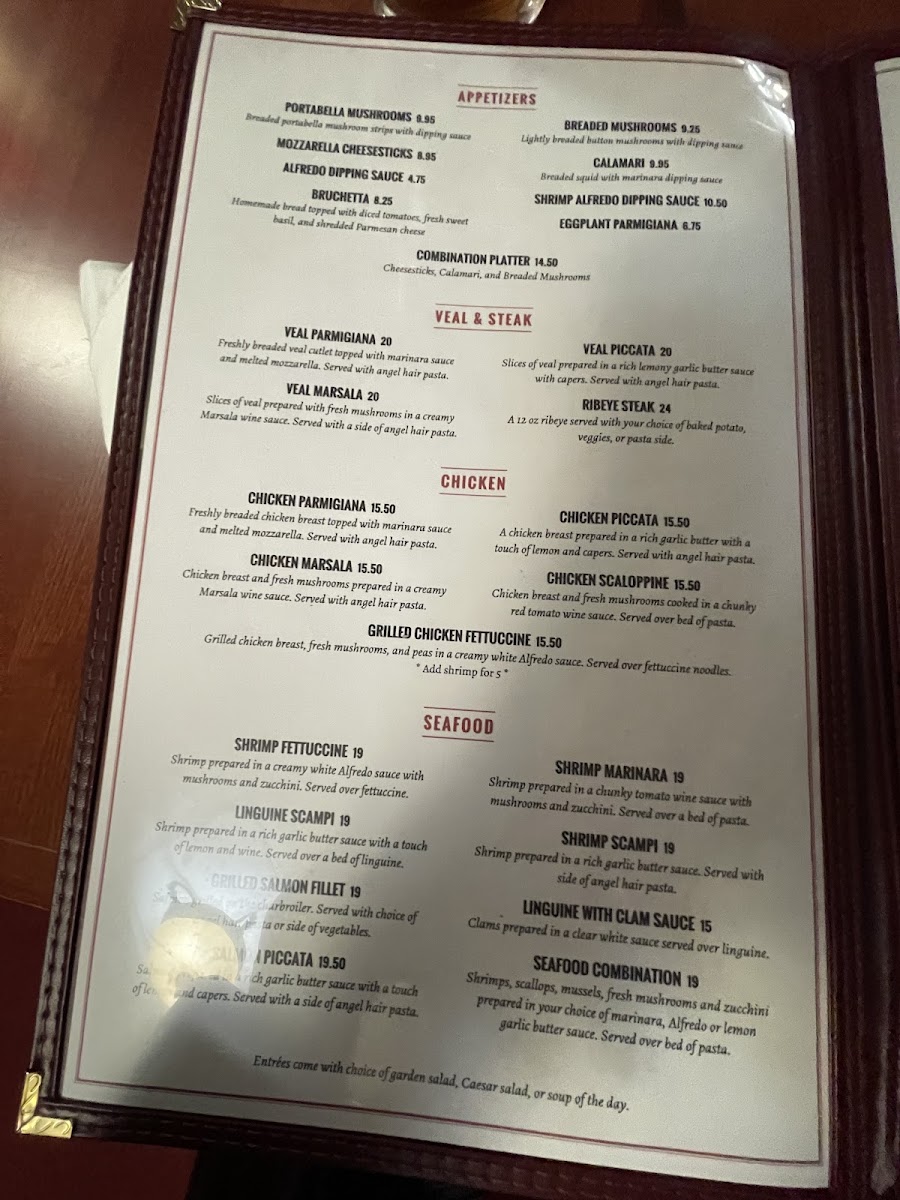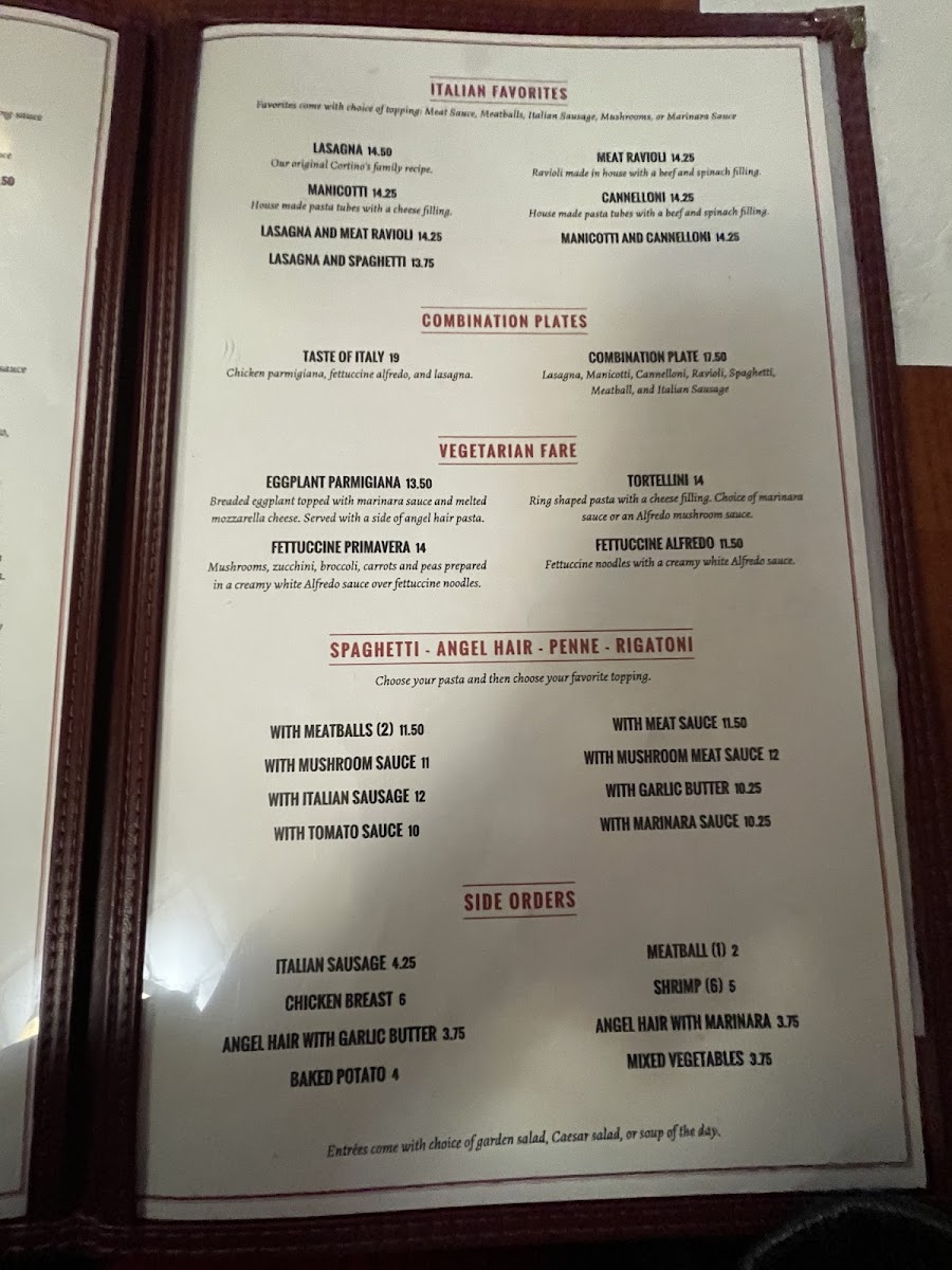 With Meat Sauce. Choose Your Salad Choice: Garden Salad, Caesar Salad, Soup Of The Day